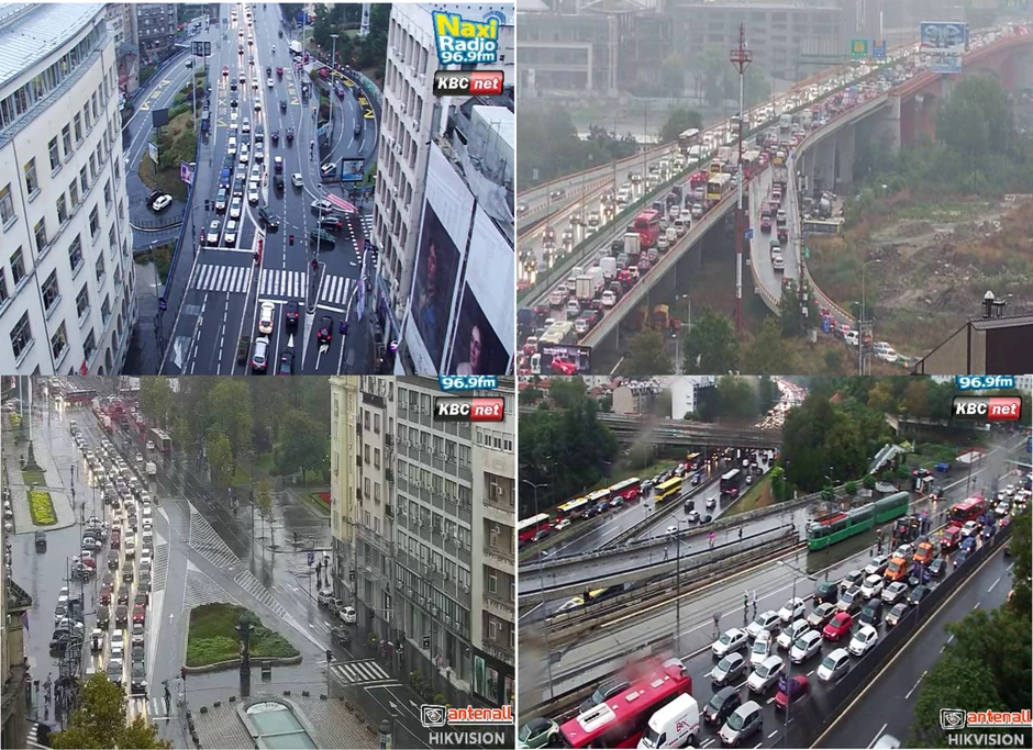 Jutarnji špic, jaka kiša koja pada u pojedinim delovima grada i mokri kolovozi doveli su do stvaranja velikih gužvi na prestoničkim ulicama. Iako iz Beogradskog taksija tvrde za "Blic" da većih zastoja nema, ipak ne osporavaju činjenicu da je saobraćaj veoma usporen.