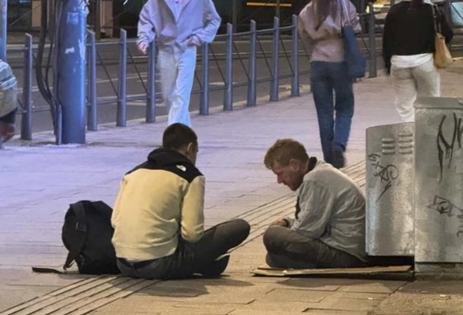 "Prava ljudskost se ne meri parama, već pažnjom i vremenom koje damo drugome. Ovaj mladić je prišao čoveku na ulici, dao mu novac za doručak, ali nije tu stao. Seo je pored njega i započeo razgovor. Jer ponekad je toplina ljudske reči i osećaj da nisi nevidljiv jednako važan kao i hleb", piše u objavi ispod dirljive fotografije.