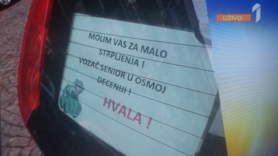 Naime, senior u osmoj deceniji, kako na nalepnici piše, na zadnjem delu svog automobila zalepio je nalepnicu na kojoj piše "Molim vas za malo strpljenja! Vozač senior u osmoj deceniji! Hvala!"
