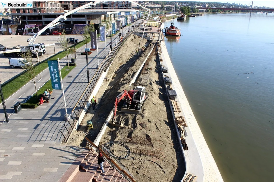 Izgradnja donjeg nivoa uveliko je u toku i već je moguće nazreti konture i funkcije donje kaskade keja. Nakon završetka glavne promenade, kako piše ugledni portal Beobuild, počeli su radovi na izgradnji donjeg nasipa, koji će sadržati još jedan pešački nivo sa stazama, terasama i stepeništima.
