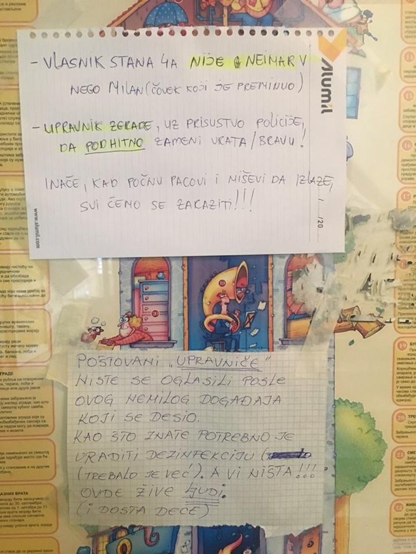- Pominjalo se i da je vlasnik stana jedna firma što nije tačno. Ostavljali smo ceduljice na ulaznim vratima u zgradu kako bi neko konačno odreagovao. Ni to nije urodilo plodom - kaže ona.