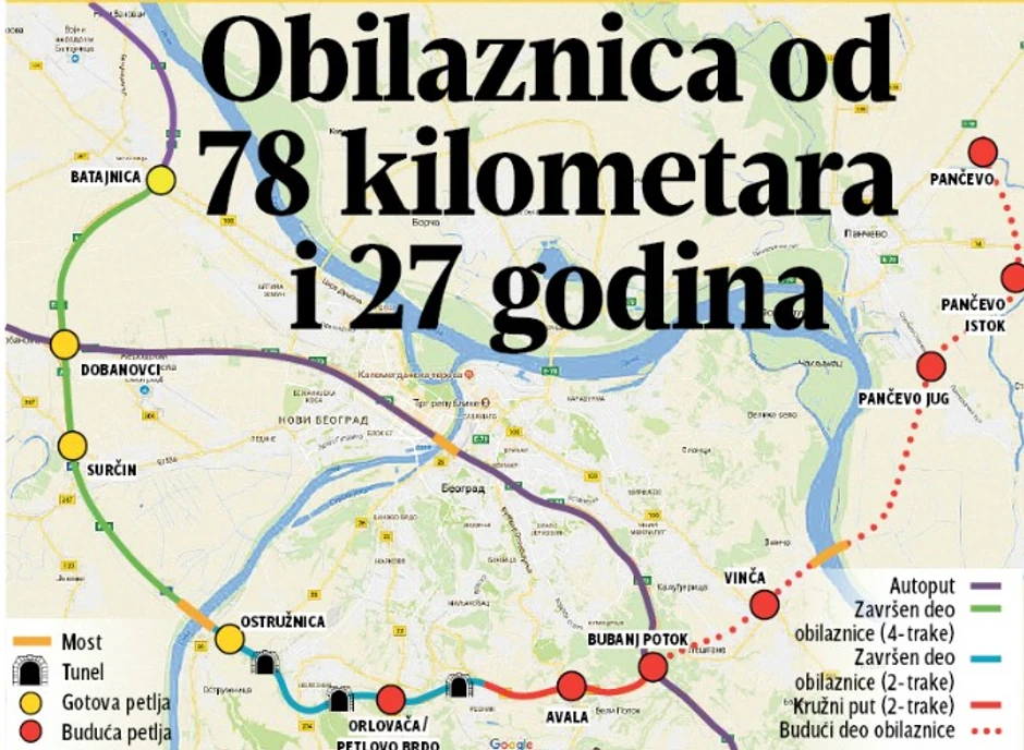 Gradnja Obilaznice oko Beograda počela je, verovali ili ne, pre 28 godina! Mnoge vlasti su najavljivale njen završetak, ali realno radovi nisu ni na polovini ukoliko se gleda kompletna trasa dugačka 78 kilometara.