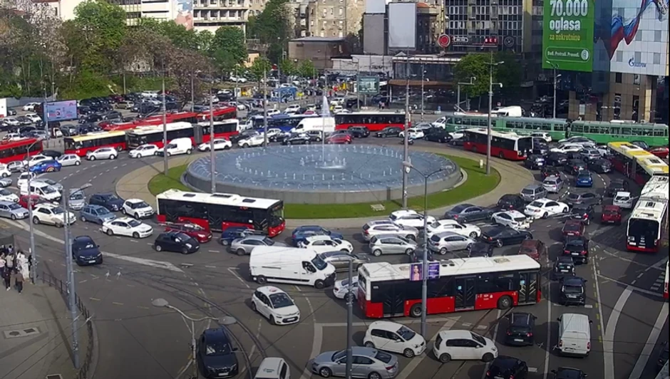 Kako se može videti na kamerama, potpuni kolaps je na kružnom toku Slavija, a blokirani su i svi prilazi ka njemu - Mekenzijeva, Bulevar oslobođenja, Beogradska, Nemanjina i Kralja Milana.