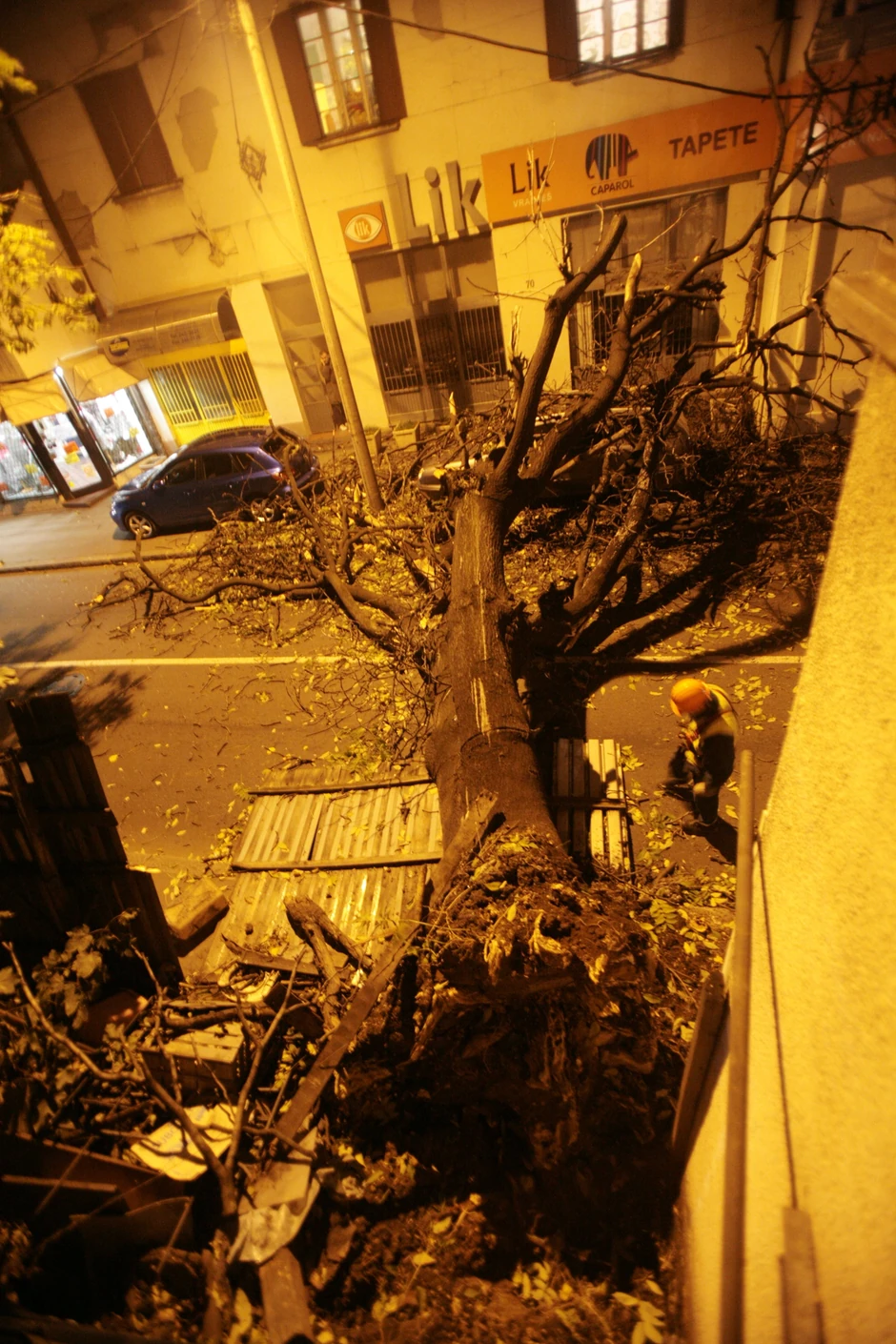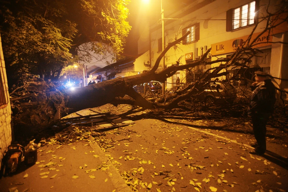 Snažan vetar iščupao je sinoć oko 22 sata iz korena stablo jasena dugačko oko 10 metara koje je zatim palo preko kolovoza u Ulici Maksima Gorkog 70, na Voždovcu. Niko od prolaznika nije povređen, ali su oštećena dva parkirana automobila, dok su stanari nekoliko obližnjih kuća imali teškoće u snabdevanju električnom energijom.
