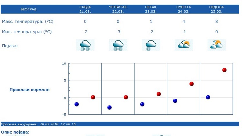 Meteorolozi su, inače, za danas najavili samo slab sneg, dok se značajnije snežne padavine u prestonici, uz formiranje belog pokrivača debljine oko deset centimetara, očekuje tokom srede i četvrtka.