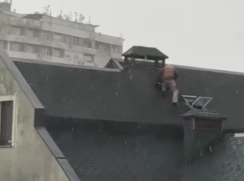 Baš u trenutku kada je oluja bila najjača na društvenim mrežama objavljen je snimak muškarca na Voždovcu koji se popeo na krov kuće kako bi popravio štetu.