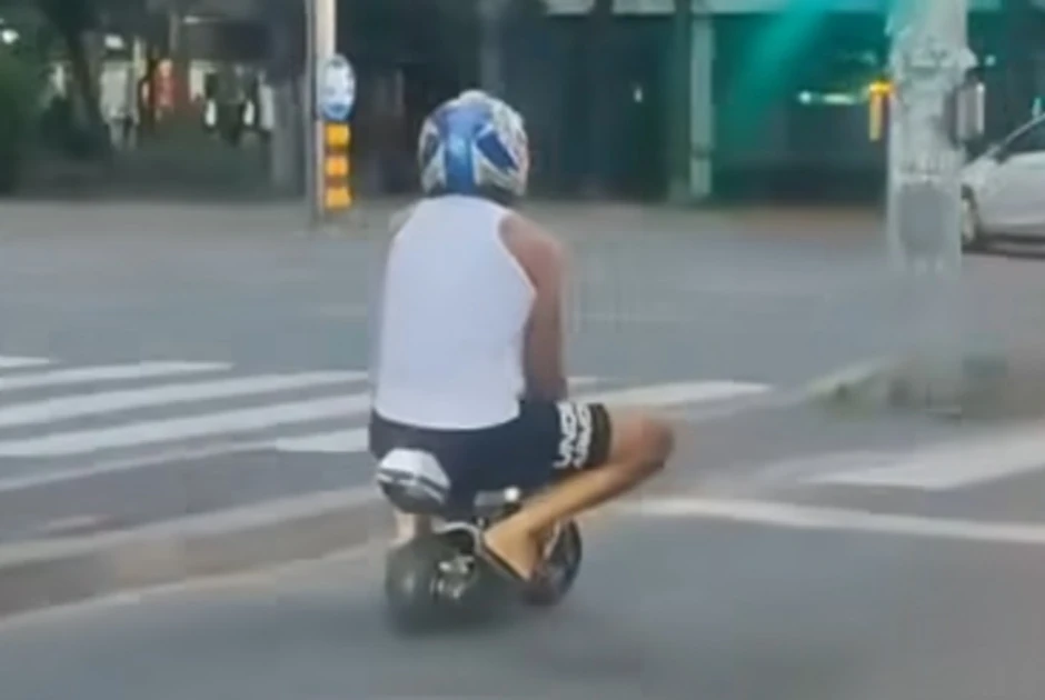 Krajnje neobična scena zabeležena je danas na ulicama glavnoga grada, kada je muškarac provozao mali motor, koji je verovatno dečija igračka.