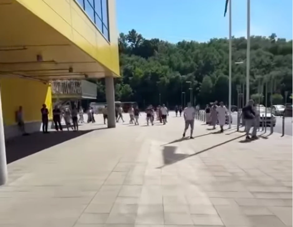 Na društvenim mrežama kruži snimak na kojem se vidi kako posetioci robne kuće istrčavaju napolje, dok se na razglasu čuje upozorenje da se svi upute ka izlazima u slučaju opasnosti.
