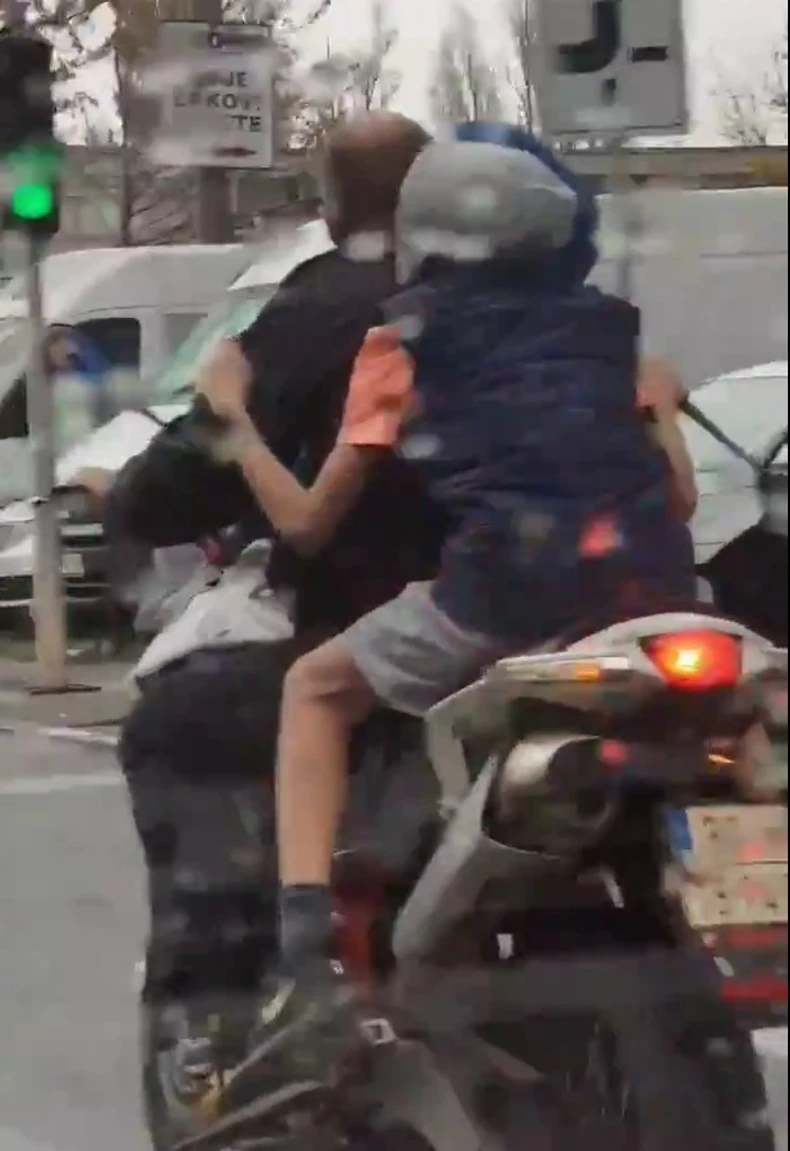 Iako se ne vidi jasno, gledajući snimak deluje kao da se na motoru uz vozača nalaze dva deteta. Bez kaciga!