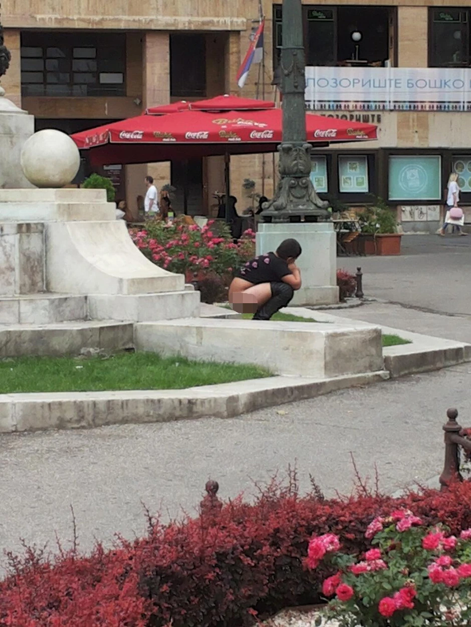Nepristojni maloletnik nije se obazirao na ljude koji su se u tom trenutku našli u blizini spomenika knezu Mihailu, pa čak ni na one koji su ovaj prizor fotografisali.