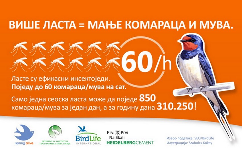 Samo jedna lasta može da pojede 850 ovih insekata za jedan, a za godinu dana 310.250! Stoga je važno da čuvamo zdrave ekosisteme i da gnezda ovih korisnih ptica zaštitimo.