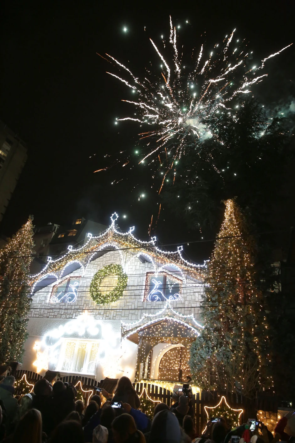 Novogodišnja rasveta na najlepše ukrašenoj kući u Beogradu zasvetlela je večeras u ritmu muzike i uz vatromet u Gostivarskoj ulici.