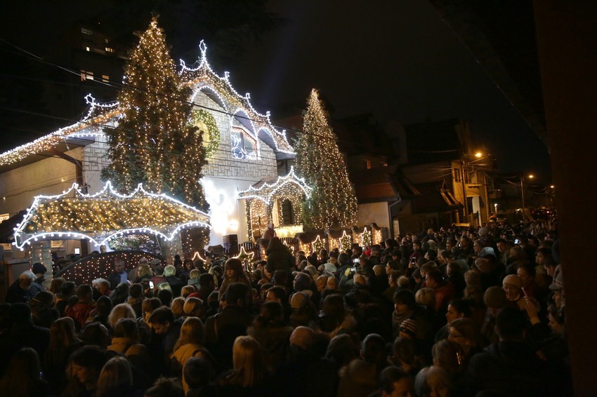 Nekoliko stotina građana prisustvovalo je novogodišnjoj čaroliji koja je počela u 19 sati nastupom solistkinje, a potom i Meri Gospel hora. Roditelji su nosili decu na ramenima, đuskali uz novogodišnje pesme, služen je punč, kao i ostalo osveženje i grickalice, dok su neki mališani pomislili da u toj kući živi Deda Mraz. Međutim, nisu bili daleko. Novogodišnja dekoracija delo je Deda Mrazovog "pomoćnika" Vuka Tomića (29) čija je kuća iz bajke proglašena za najlepše okićenu kuću u prestonici.