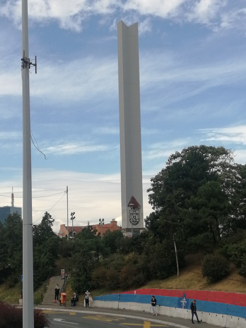 Četvorostrani stub koji se sužava ka vrhu, obelisk, visok čak 27 metara, što ga čini najvećim spomenikom u Beogradu, posvećen je Pokretu nesvrstanih i prvoj konferenciji ove organizacije koja je 1961. godine bila održana u glavnom gradu, tada Jugoslavije, a čiji je tadašnji predsednik bio jedan od osnivača ovog pokreta koji je okupio 120 zemalja koje nisu želele da učestvuju u podeli na dva bloka u svetskoj politici.