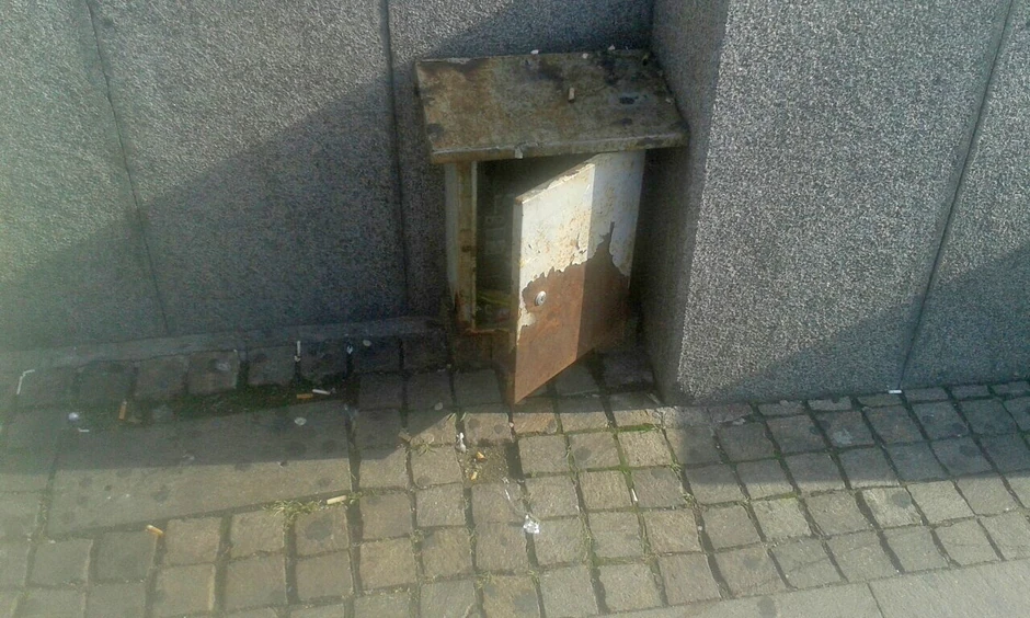 Da li zbog nedostatka kanti za otpatke, kontejnera ili zato što ne znaju čemu služi zarđala kutija nasred velelepne zgrade, tek kutija za električne instalacije ispred Narodnog pozorišta puna je smeća.