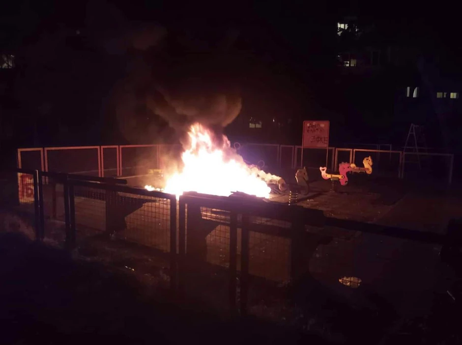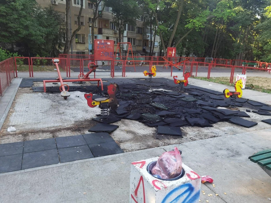 Igralište za decu u naselju Braće Jerković, koje je grad obnovio i uredio pre tri godine, sinoć su zapalili huligani.