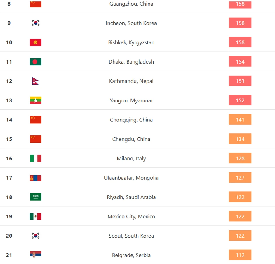 Srbija se u odnosu na ostale zemlje konstantno nalazi u crvenoj zoni kvaliteta vazduha. Stanje se ne popravlja, naprotiv, sve je gore.