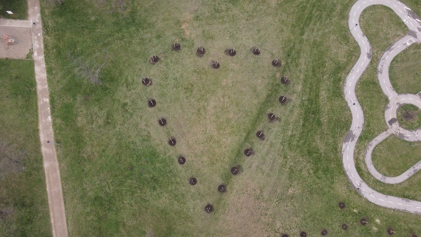 Posađena stabla crvenog hrasta imaju više od 10 godina i srce će vrlo brzo moći da se uoči kada olistaju. Crveni hrast simboliše obnovu i otpornost, posle požara u šumi, crveni hrast se diže iz pepela i obnavlja; čvrstinu, stabilnost sa svojim dubokim korenjem, mudrost kroz svoju dugovečnost i plemenitost (krošnja crvenog hrasta čini bogatu hladovinu i pleni svojom lepotom, okuplja ljude pod svojom krošnjom).