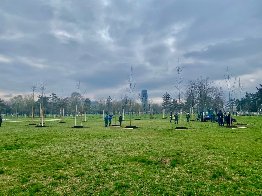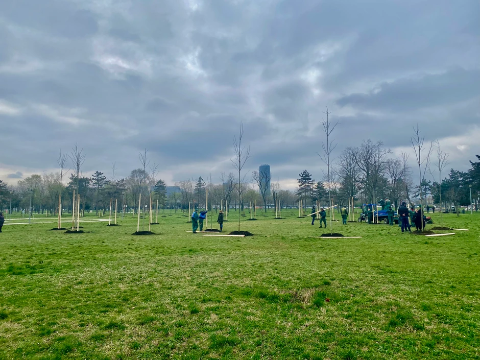 Sa vrlo posvećenim radnicima „Zelenila“ na Ušću, sadnji su prisustvovali i roditelji dece iz škole „Vladislav Ribnikar“.