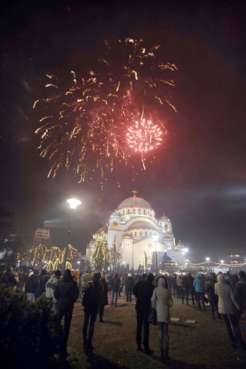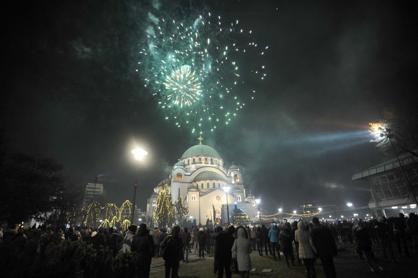 Tradicionalno okupljanje ispred Hrama Svetog Save na Vračaru uoči dočeka pravoslavne Nove godine ispratilo je večeras oko hiljadu ljudi koji su uživali u sedmominutnom vatrometu. Nakon toga usledio je aplauz, poljupci i zajedničko veselje.