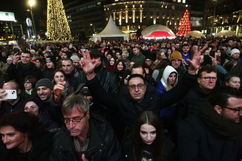 Trubači Elvisa Bajramovića su zagrejali atmosferu pred koncert Gorana Bregovića na Trgu republike, uz čije će hitove, ali i zajedno sa specijalnim gostima iz popularne grupe "Bijelo dugme", Beograđani i gosti dočekati Novu godinu po Julijanskom kalendaru.