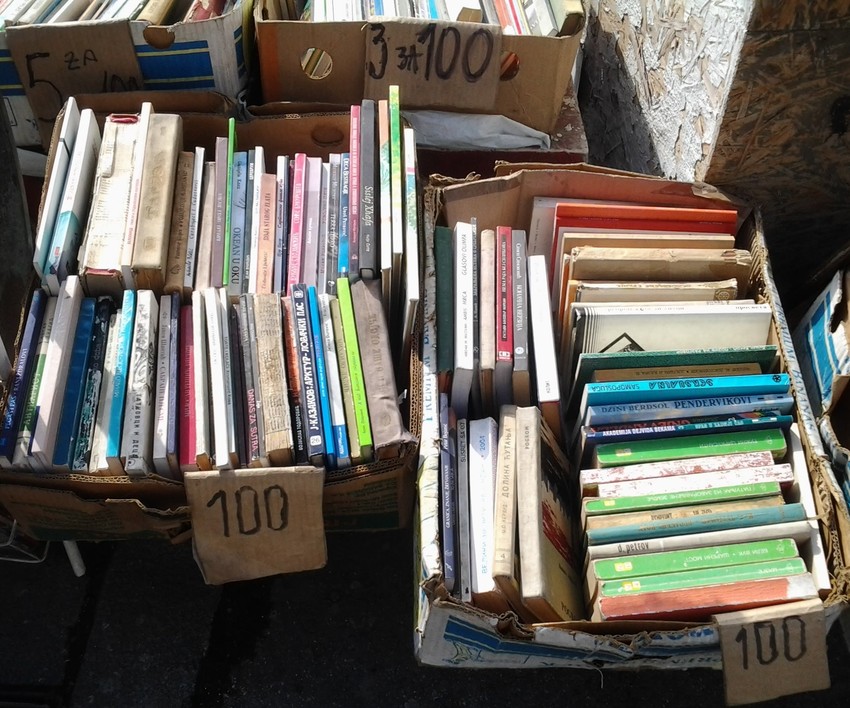 Na jednoj od tezgi zatekli smo stariju sugrađanku koja je donela mnogo knjiga da ih proda.