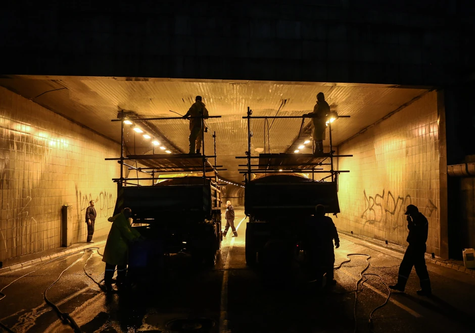 Policijski čas tokom vikenda, kao i minimalan broj vozila na ulicama, gradske službe su iskoristile i za sređivanje Terazijskog tunela, jedne od najprometnijih destinacija u prestonici.