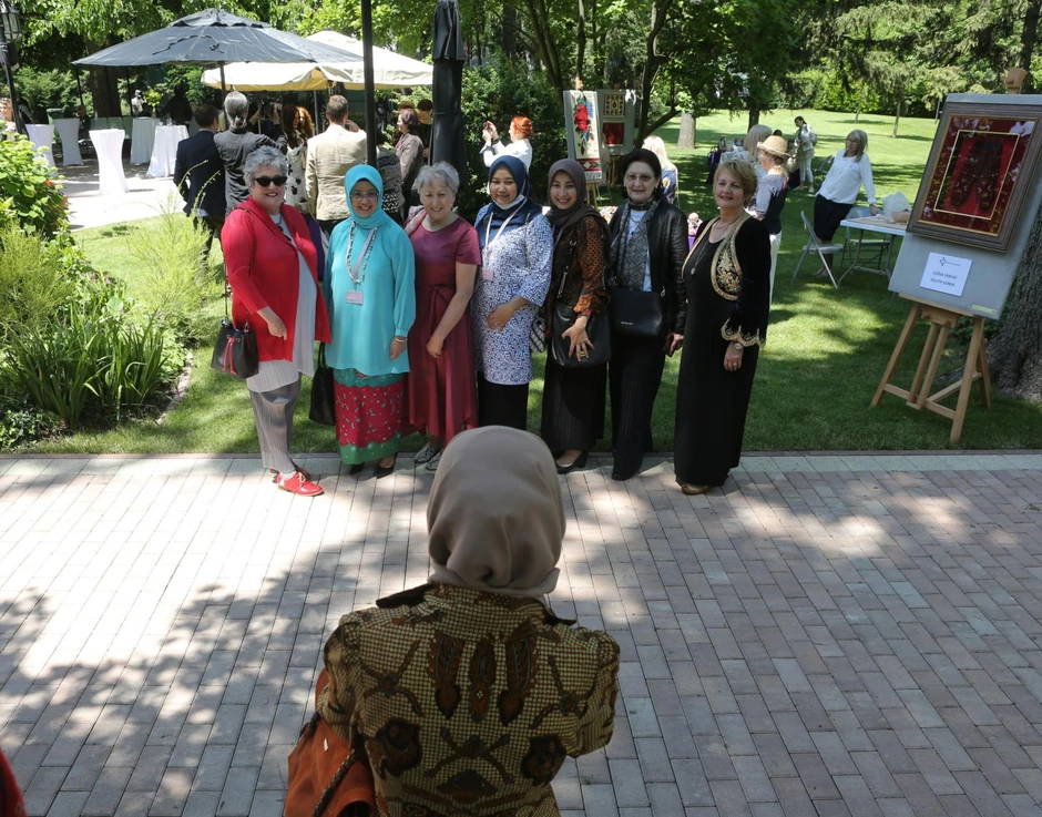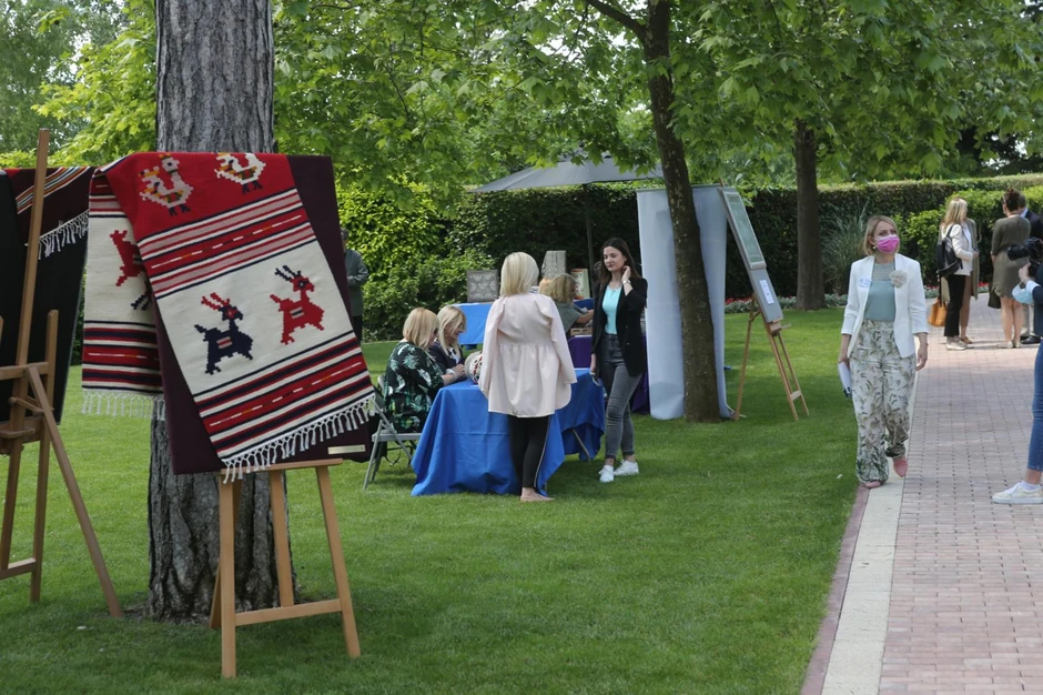 Od plavog zmijanskog veza na belom platnu, tkanih ćilima, kovanog nakita u pozlati, loptastih filcanih zvečki, do šerijatske venčanice iz "1001 noći" - bašta rezidencije ambasadora Sjedinjenih Američkih Država u Beogradu zablistala je zlatovezom, srebrnom filigranskom srmom, i čarobnom ženskom energijom.