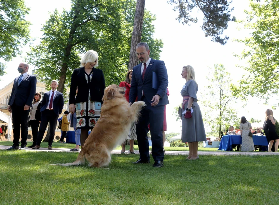 Ceremoniju je uveličao i jedan umiljati zlatni retriver, koji se prvo sklupčao ispred bine, pa poigrao sa američkim ambasadorom, a na kraju se ponadao da će u blizini švedskog stola omastiti brk - ali ništa od toga.