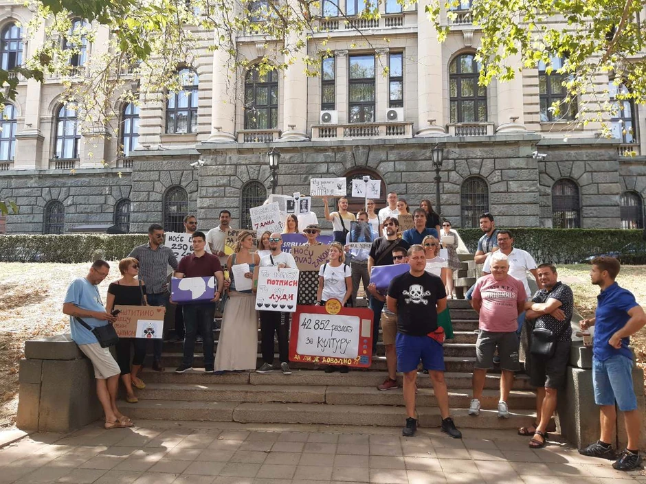 Nekoliko desetina građana, okupljenih u raznim udruženjima, okupilo se danas ispred Doma Narodne skupštine.