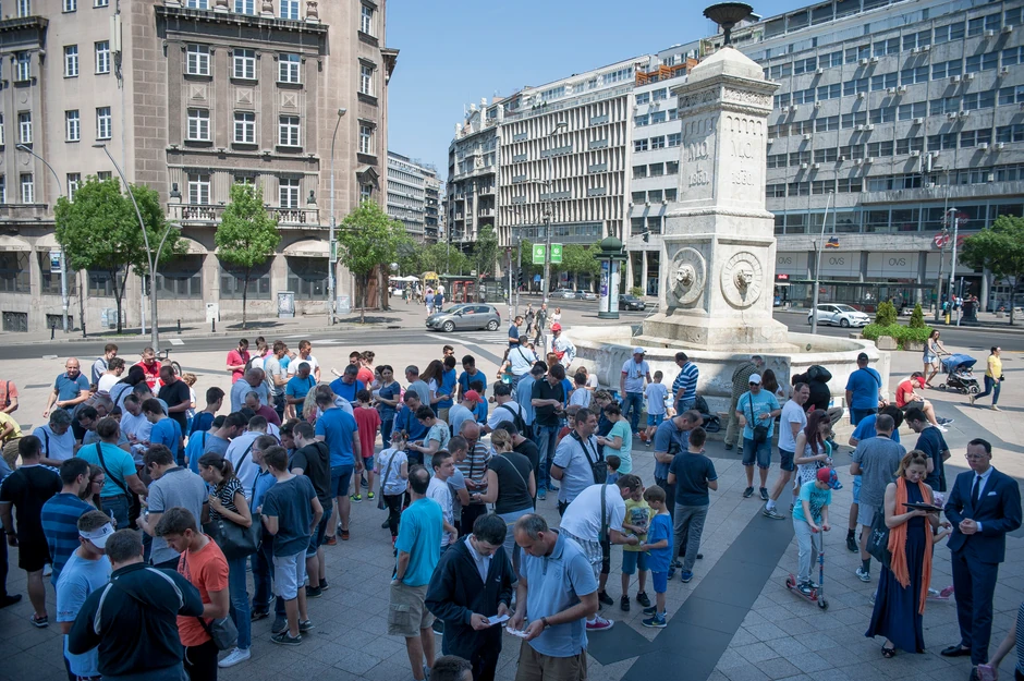 Deca, penzioneri, majke, očevi, momci, devojke i danas su tačno u podne bili na istom mestu, kod Terazijske česme. Cilj je već godinama isti - razmenjivanje sličica, a budući da se Svetsko prvenstvo u fudbalu koje se održava u Rusiji bliži, užurbanost da se album popuni je sve veća.