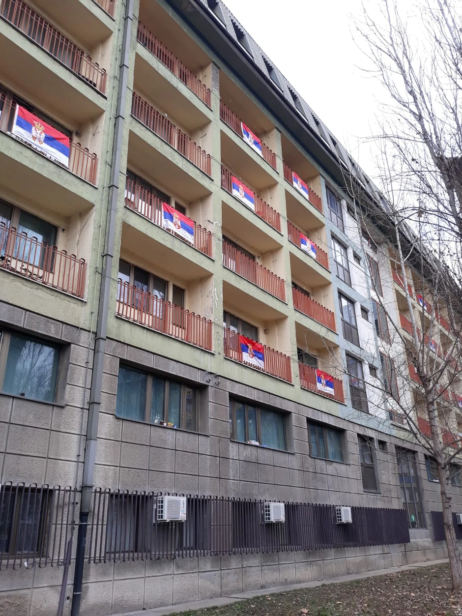 Povodom predstojećeg praznika Dana državnosti, stanovnici Studentskog grada na Novom Beogradu odlučili su da ga obeleže na poseban način. Sa prednje strane trećeg bloka, studenti su, naime, po terasama okačili veliki broj srpskih zastava.