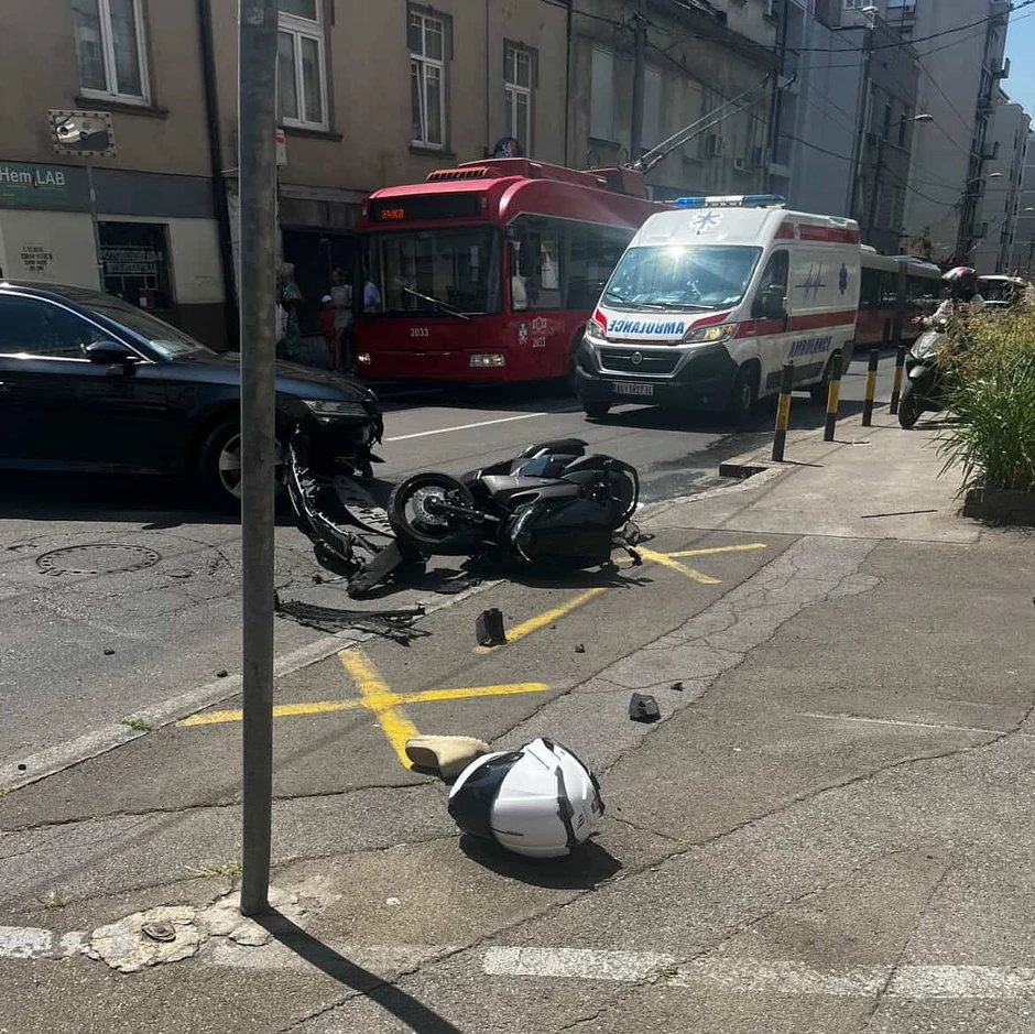 Nešto posle 13 časova u Ulici Cara Nikolaja II na Vračaru u Beogradu došlo je do sudara automobila i motora.