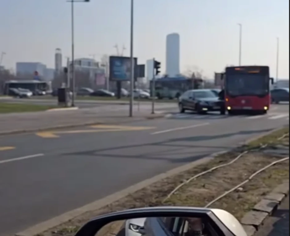 Kako se može videti na video snimku koji je objavila stranica Moj_beo_grad, crni automobil se desnom stranom "zakucao" u autobus koji saobraća dalje kroz Bulevar Nikole Tesle i ka Zemunu.