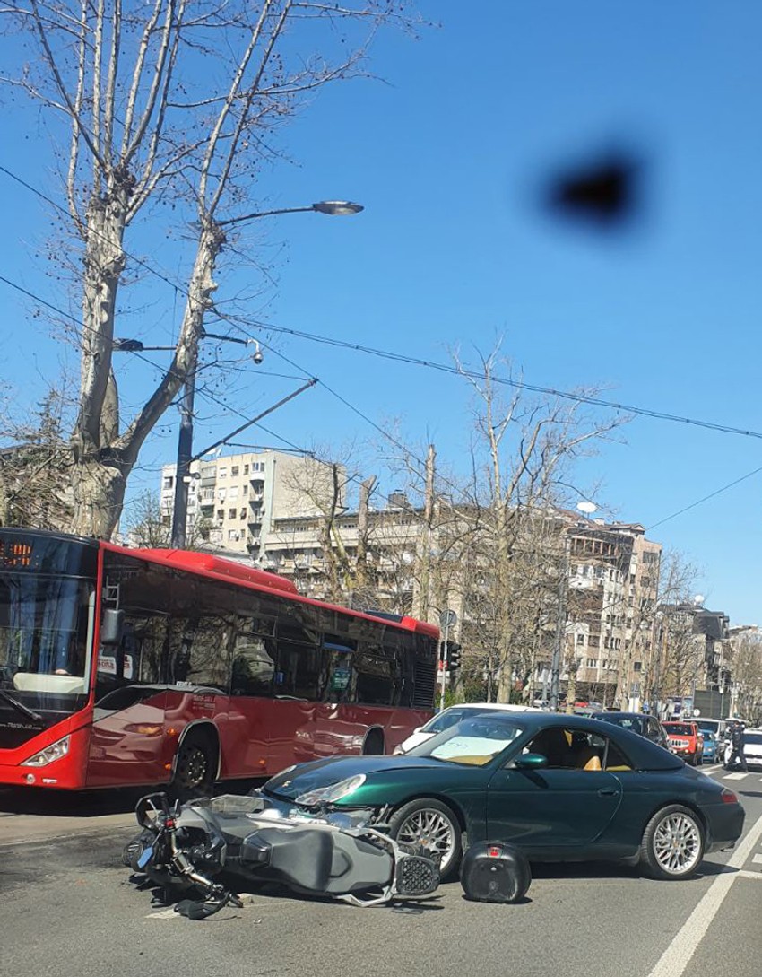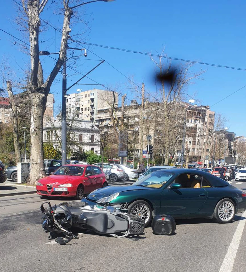U blizini Hrama Svetog Save došlo je do sudara u kome su učestvovali motocikl i automobil "porše", a saobraćaj je u ovom delu grada trenuto u zastoju, velika gužva je na na Slaviji i okolnim ulicama.
