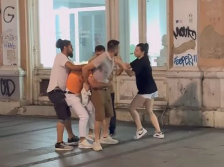 Devojka koja je bila sa njima pokušala je da ih razdvoji, stavljajući se između sukobljenih strana, ali je umalo i sama zadobila udarce, koje je samo pukom srećom izbegla.