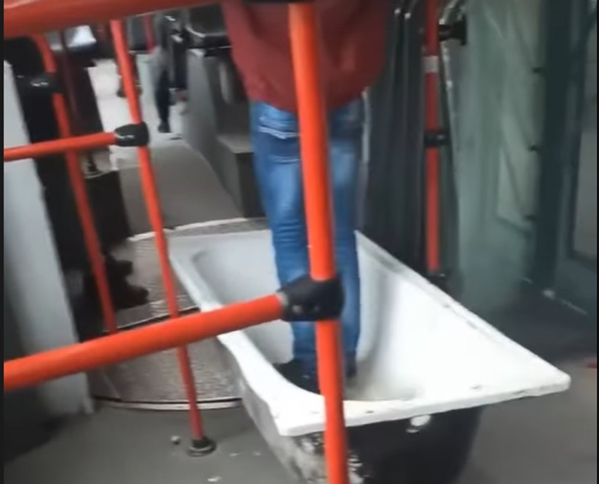 Jedan od putnika uneo je kadu u prevoz! Ali to nije bilo sve. On je kadu položio na pod, stao u nju i držeći se za šipku tako nastavio svoju vožnju.