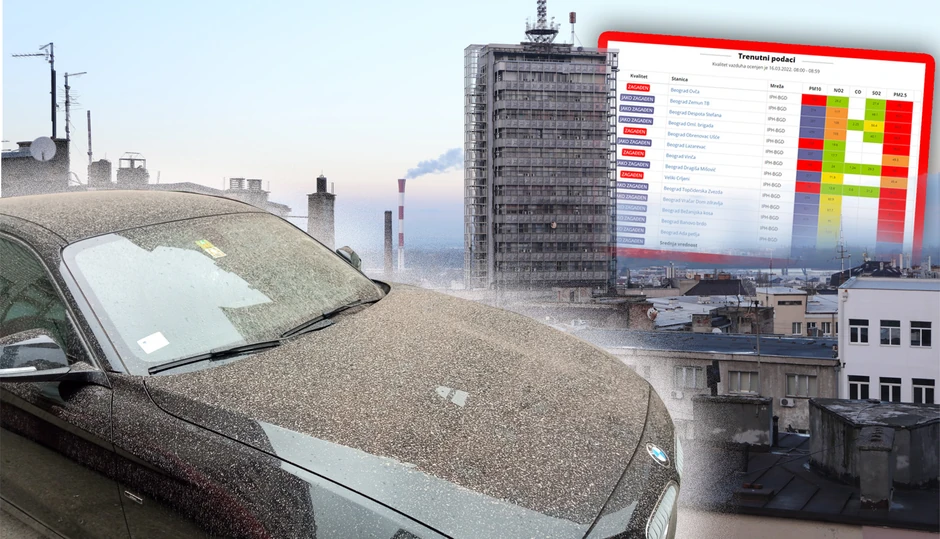 I Iz Gradskog zavoda za javno zdravlje (GZZZ) saopšteno je da je danas došlo do naglog porasta koncentracije suspendovanih čestica PM10 na celoj teritoriji Beograda što je indeks kvaliteta vazduha svrstalo u kategoriju jako zagađen.