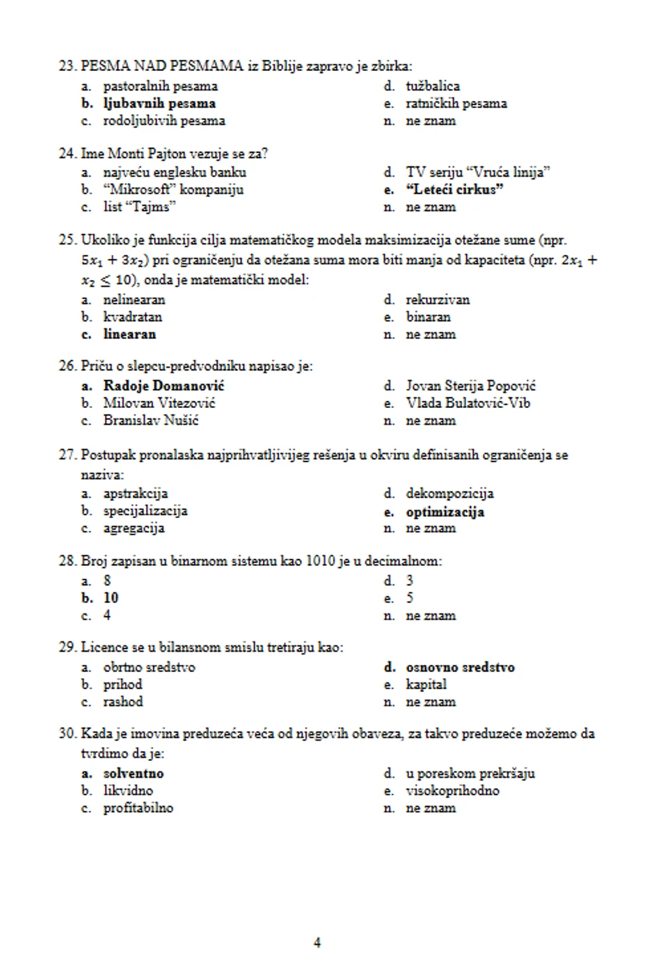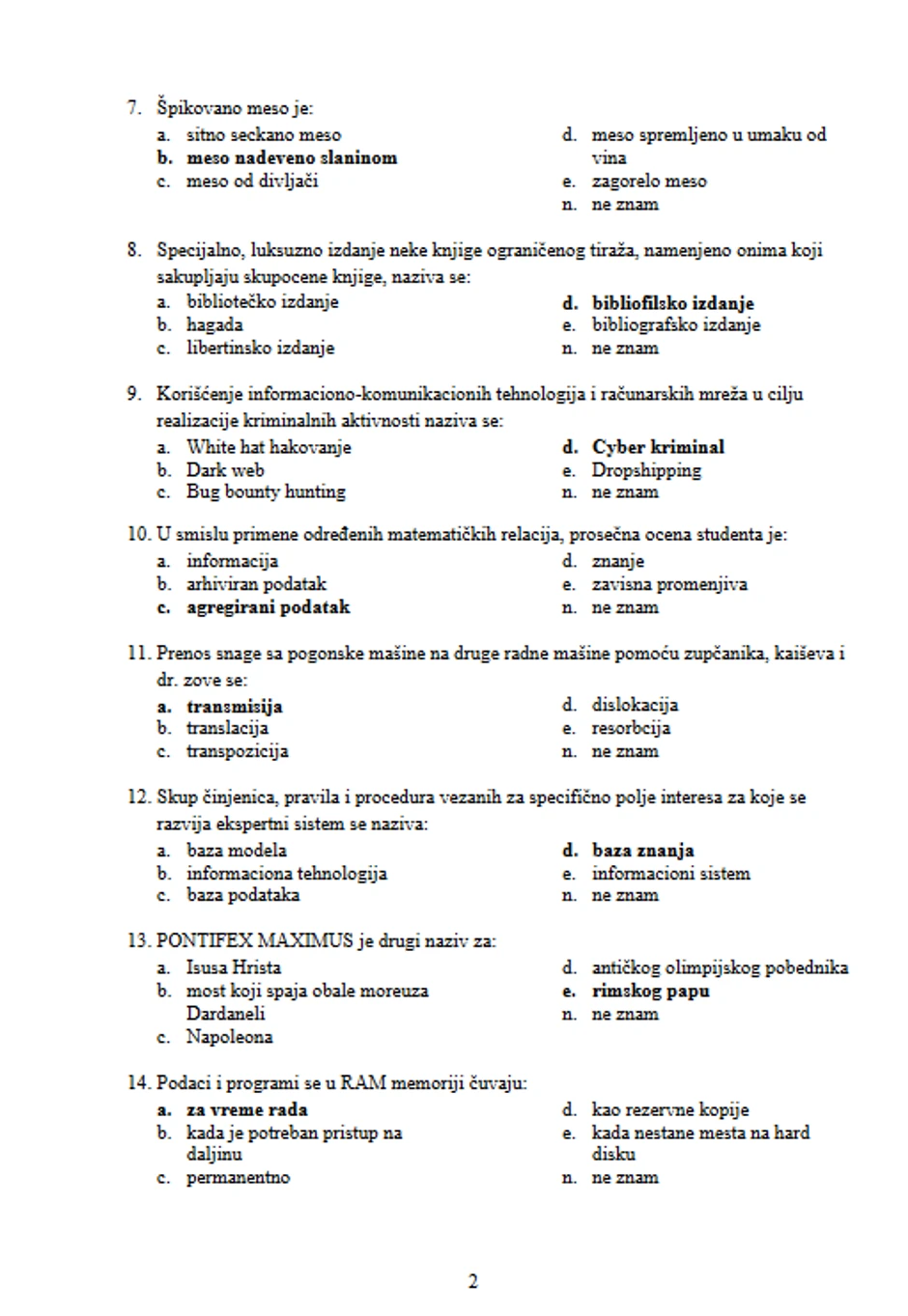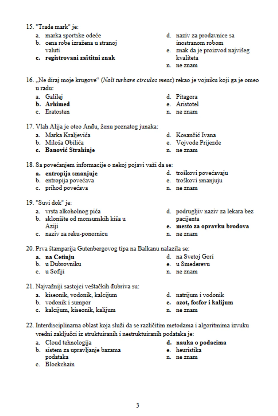 Evo nekih primera, kako su ti testovi izgledali ove godine.