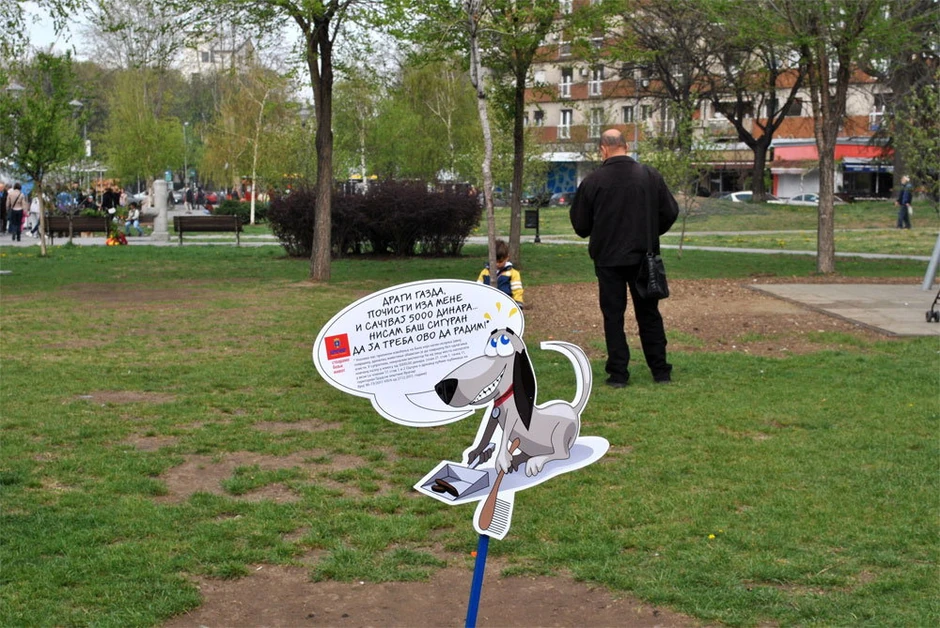 Table upozorenja za vlasnike pasa, sa tekstom kako treba da se ophode prema javnoj površini, postavljene su danas na nekoliko lokacija u opštini Vračar.