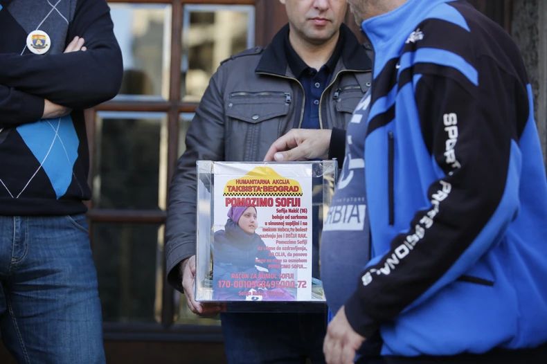 Paralelno sa svojim svakodvnevnim protestima i blokadama grada, taksisti iz najvećih beogradskih taksi udruženja, sprovode i humanitarnu akciju za pomoć maloj Sofiji Nakić, oboleloj od raka grla.