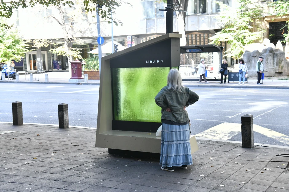 Kako bi taj problem rešio, naučnik iz Srbije, doktor biofizičkih nauka Ivan Spasojević je izumeo "tečno drvo". Smešten je u Makedonskoj ulici, blizu opštine Stari grad. Deluje kao video bim, ali nije - to je, stručno nazvano, prvi foto-bioreaktor u Srbiji.