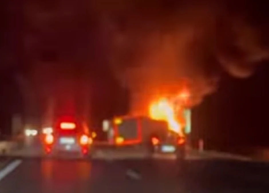 Kako se vidi na snimcima sa lica mesta, kamion guta buktinja.