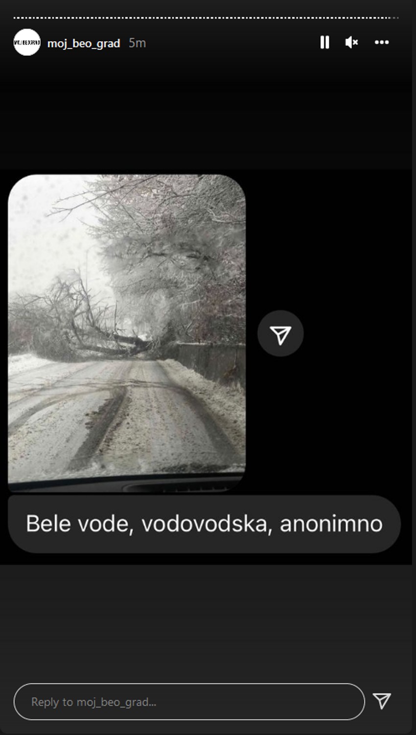 U Lominoj ulici, verovatno od snežnih nanosa, palo je drvo i ne samo što je preprečilo ulicu već je i oštetilo parkiran auto u blizini. A slično se desilo i u Belim Vodama.