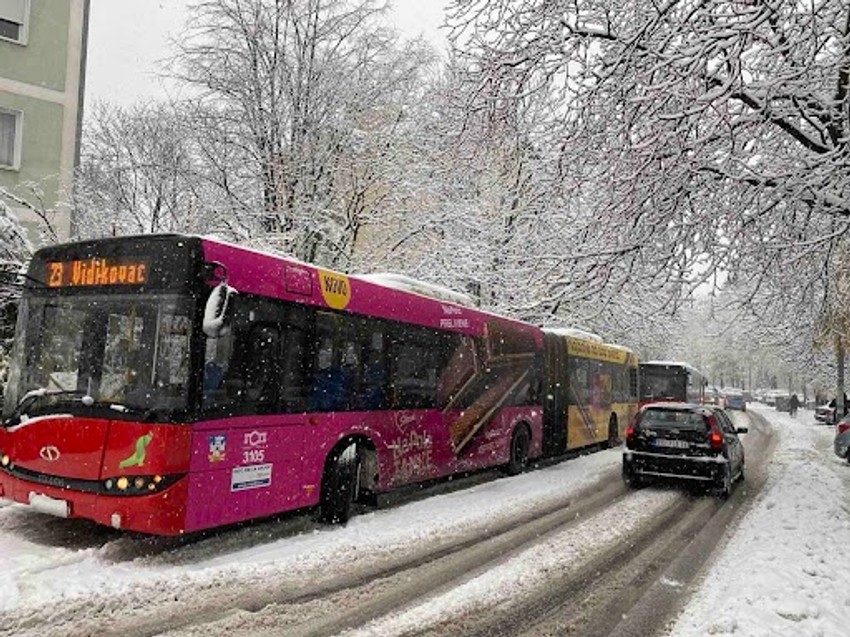 Kako piše "Kurir", veliki zglobni gradski autobus preprečio se na uzbrdici u ulici Dragoslava Srejovića i zaustavio saobraćaj. Reč je o raskrnici Dragoslava Srejovića i Volgine. Na kolovozu ima dosta ugaženog snega jer je napolju prava mećava, a koliko god se čisti, novi napada za tren oka.