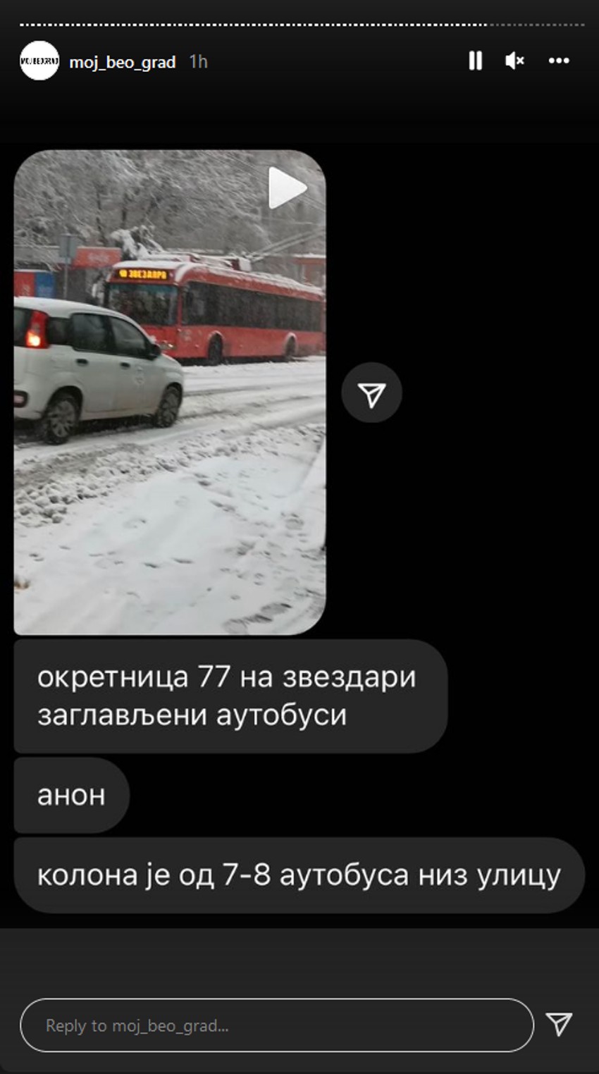 Na društvenim mrežama takođe kruže objave i fotografije autobusa koji ne mogu da se probiju od snega, pa je tako bilo i u Vojvode Mićka na Karaburmi i u Borskoj ulici na Miljakovcu.