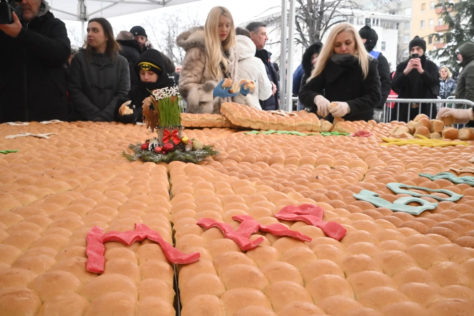 Božićna česnica je bila napravljena od 200 kilograma testa, imala je 7.000 jufki, a u njoj su se nalazila sakrivena 33 zlatna dukata.