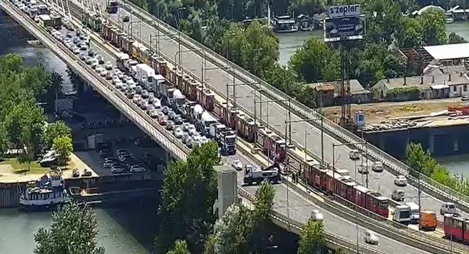 Kako se može videti na gradskim kamerama, saobraćaj na Mostu na Adi je obustavljen u smeru ka Novom Beogradu, a na licu mesta se nalazi policija i dizalica.