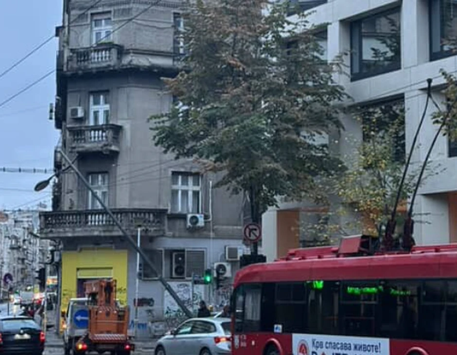 Na uglu Makedonske i Svetogorske ulice jutros je došlo do incidenta u saobraćaju kada je pala betonska bandera. Saobraćanje trola koje prolaze ovom deonicom privremeno je obustavljeno.