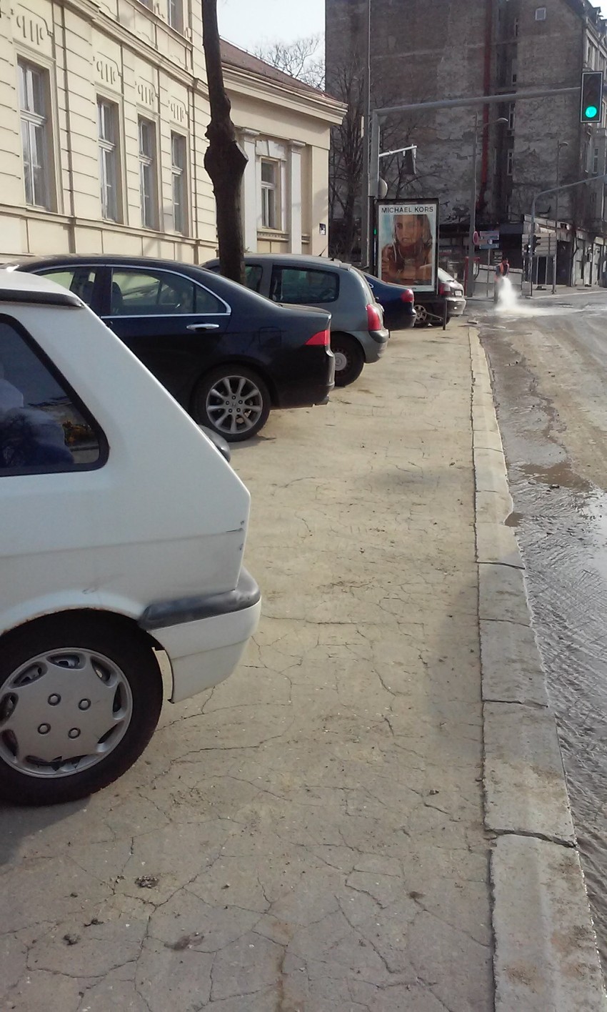 U Pariskoj ulici, mnogi sugrađani i turisti parkirali su svoje automobile na trotoaru, na kom nije obeležen parking prostor. Prolaznici su morali da se provlače između automobila, jer su oni gotovo zauzeli ceo trotoar.